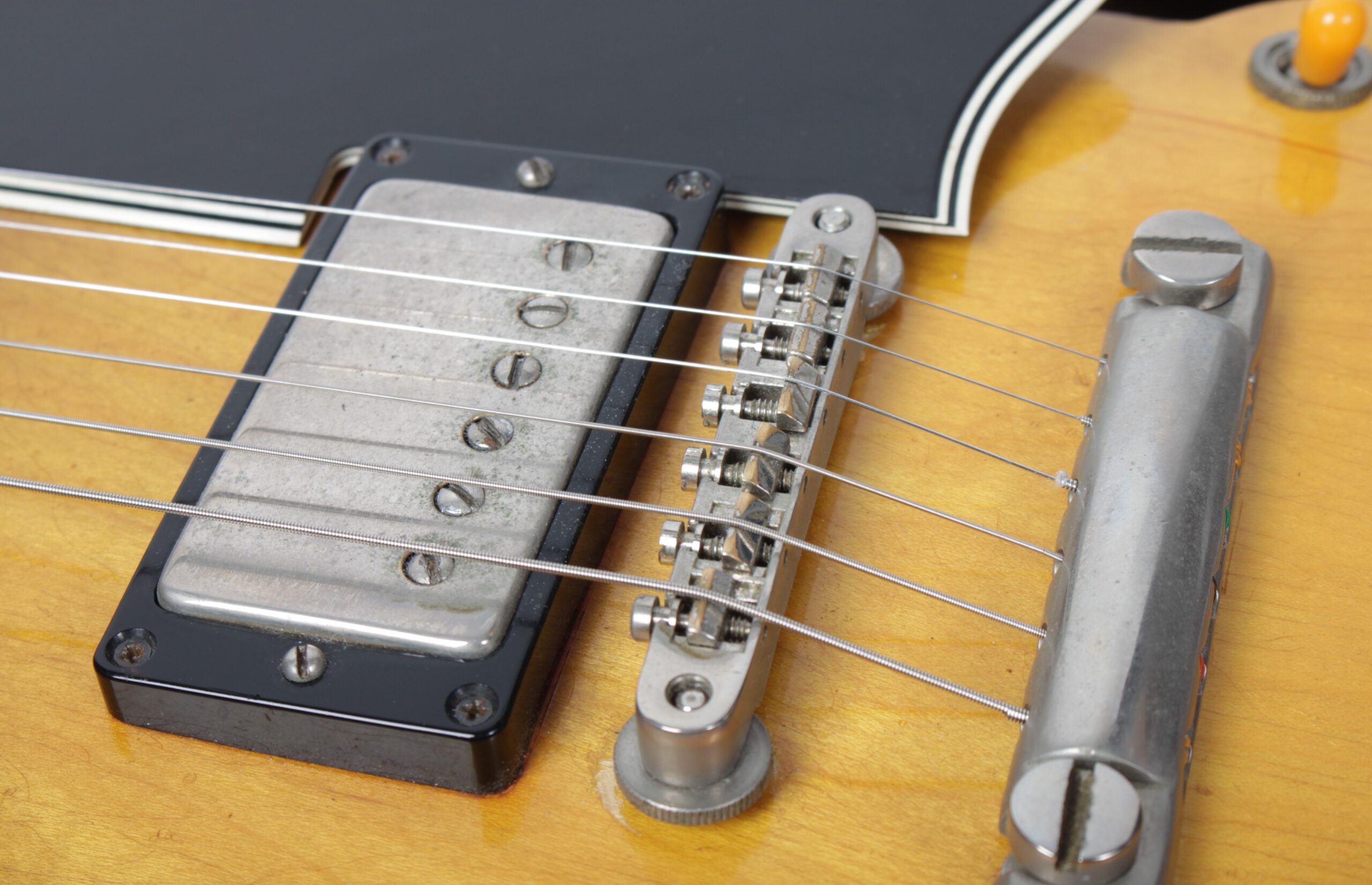 Tonabnehmer: 2 x PAF – Humbucker Patent Applied For (Neck Original PAF Early 58´, Brigde PAF Late 59´ or screws changed, Cover opened, Pickup Frames changed)